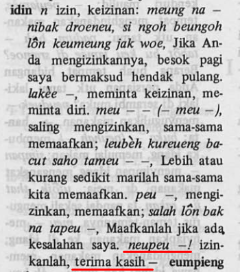 Aboe Bakar dkk dalam Kamus Aceh-Indonesia (1985) menulis neupeuidin
