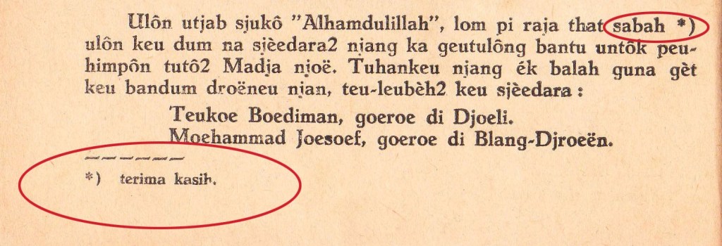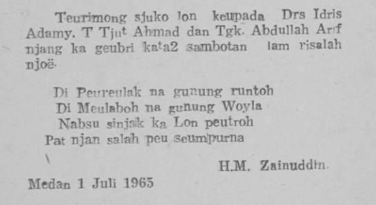 Hasan Tiro dalam buku Jum Meurdéhka (1985) menulis teurimong geunaséh