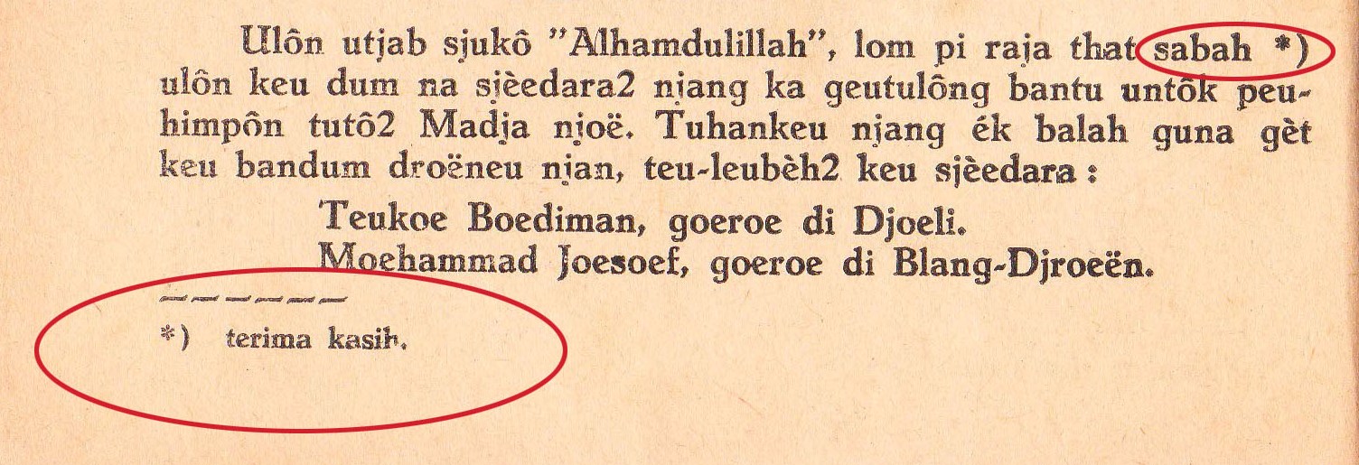 Hasjim MK dalam buku Narit Maja (1968) menulis sabah